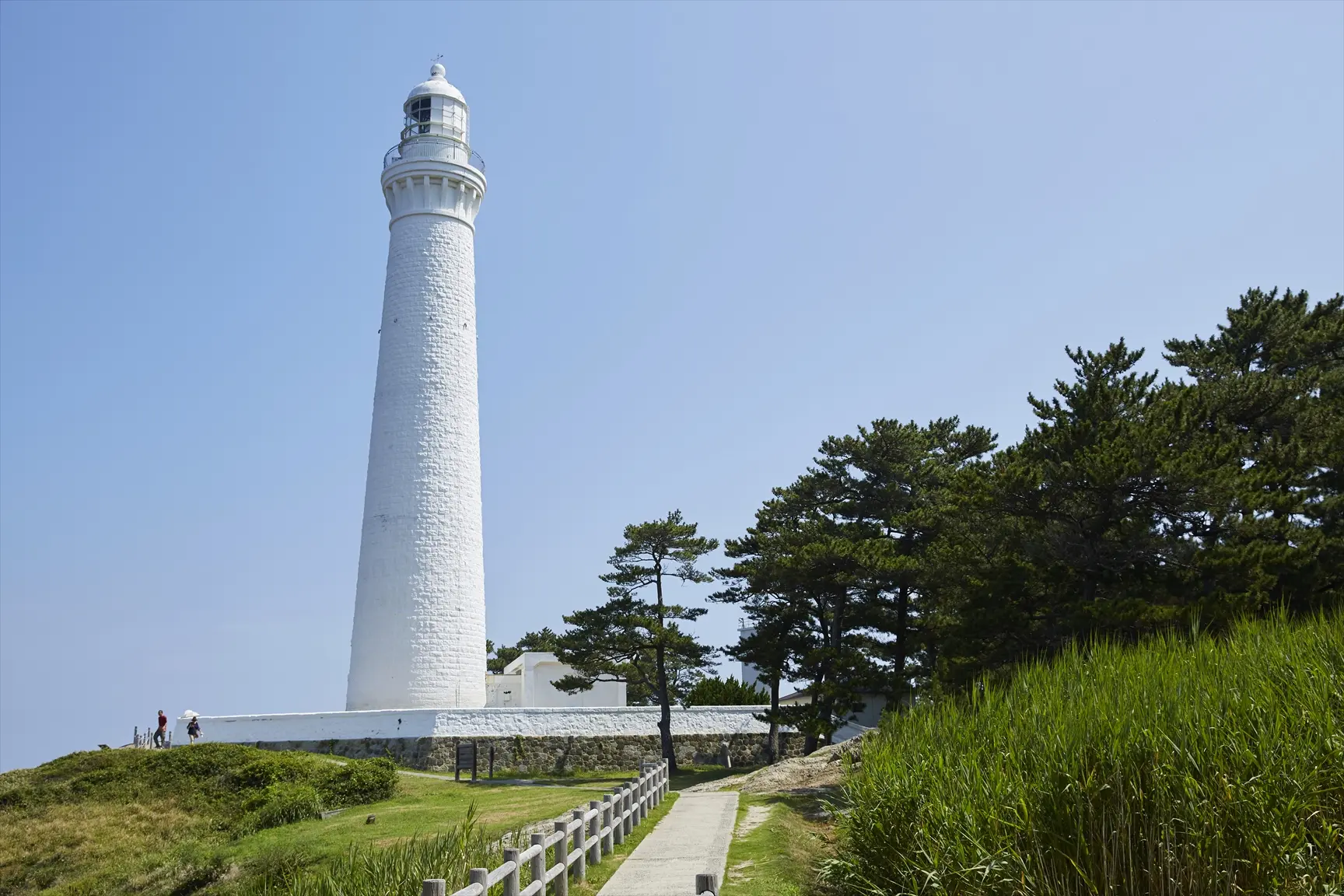 「石造りでは日本一の高さ」とうたわれる、日御碕に立つ灯台。日本人灯台技師の草分け的存在である石橋絢彦が建築を担当。ブラントンの技術をはじめ、本場スコットランドから学びを得た日本人の技術が結実した灯台。二重構造(外壁を石造、内壁をレンガ造り)という特殊な建築方法による耐震性。その恩恵もあり、塔高の高さにも関わらず現在も建築当時と同じ姿を残す。